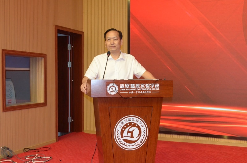 赤壁慧晟实验学校校长夏海滨回顾了自己过去在市一中工作和学习经历。他希望,高中部老师在新的工作环境、新的岗位,要加强学习与研究,勤学习、定目标、讲规矩、讲奉献,夯实教学常规,推进教学创新,提升教育质量,共同开创慧晟教育事业新局面。校党委书记谢新国总结了过去一个学期里学校的各项工作与成果。他指出,上学期,全校教师同心同德,围绕学校学期工作重点,创新管理机制、丰富校园文化、充实教研活动、狠抓习惯养成等。达到理想的教育教学效果,取得良好的反响,不管是全市期末统考、联考,还是参加各类比赛,捷报频传,硕果累累,无论是数量还是层次上取得新的突破。同时,谢书记还就教师暑期培训、开学前教学准备、学生入校等工作做了安排与部署。